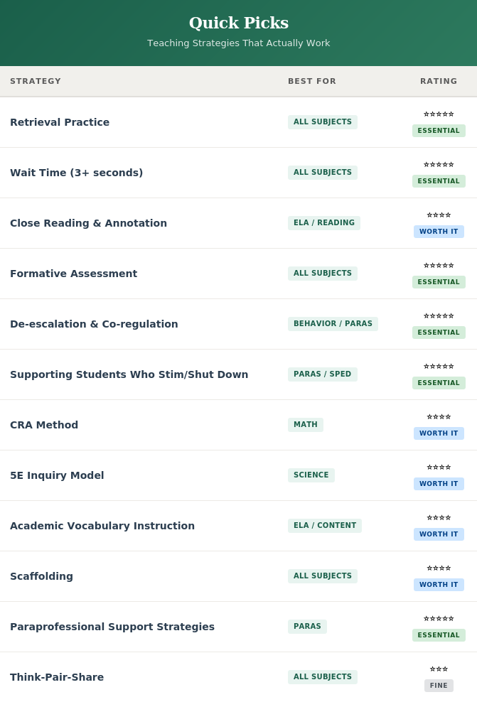 Teaching Strategies That Actually Work, Rated
